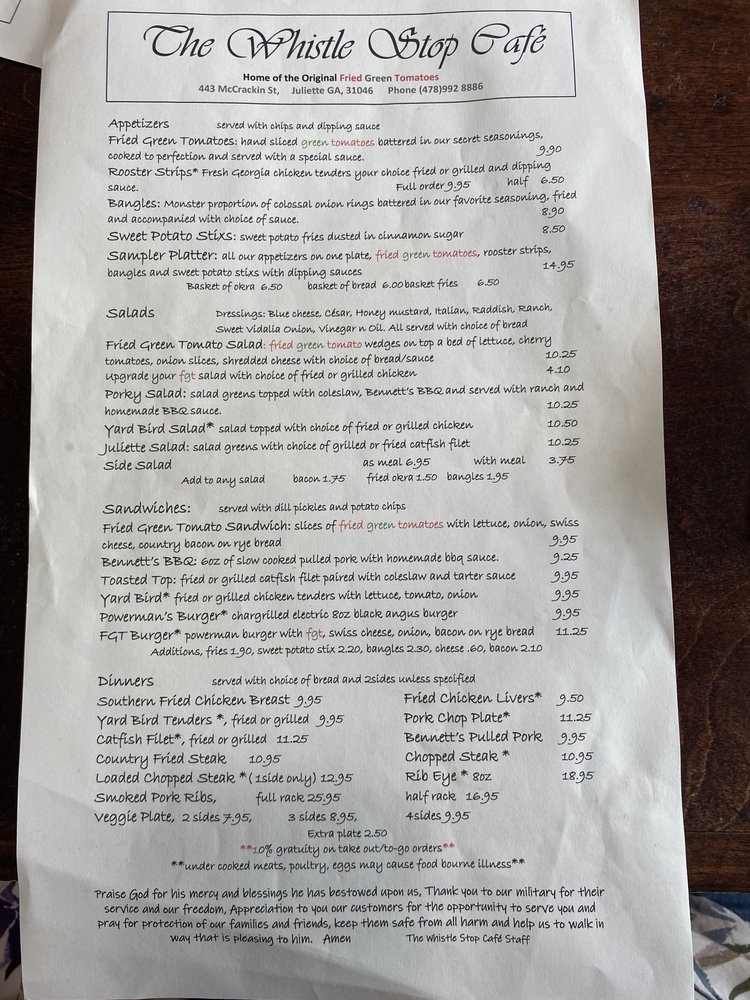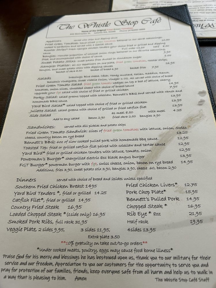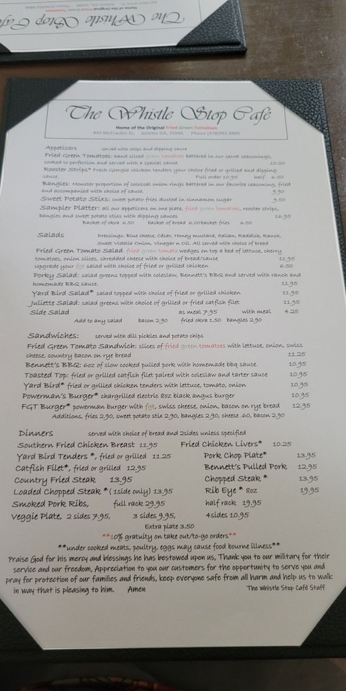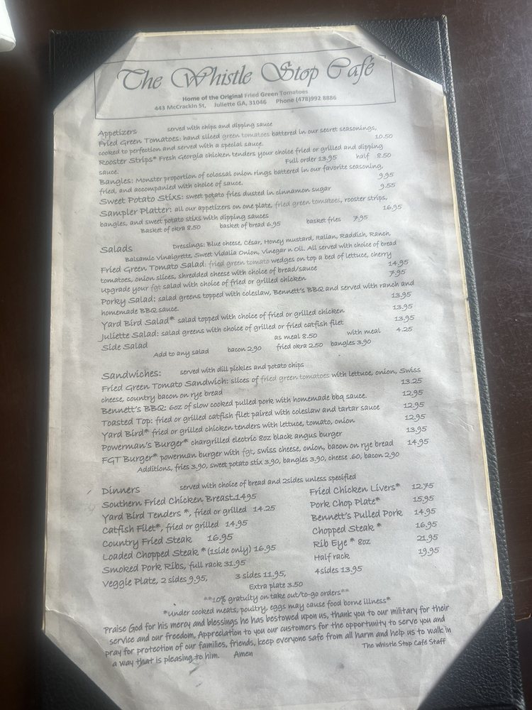 Welcome to Whistle Stop Cafe, a charming eatery nestled in Juliette, GA, offering a delightful taste of American comfort food. This cafe is perfect for families and friends, providing a casual atmosphere with outdoor seating and a kid-friendly vibe.